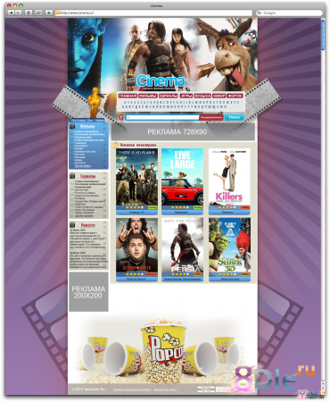 DLE 9.0. Дизайн сделан очень красиво и оригинально в 3-х цветной палитре. Предназначен для кино-порталов, сайтов фильмах. Дизайн шаблона имеет классный задний фон, а также киношную шапку. Всё части дизайна полностью соответствуют названию "Cinema". В архиве также имеется PSD макет, а также модули.