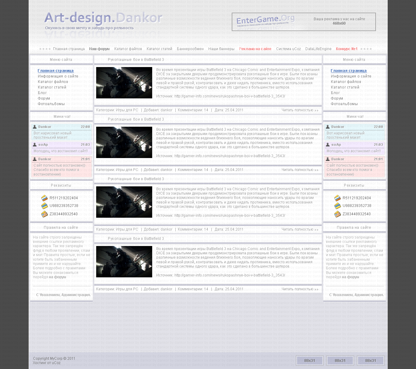 Art Design - видимо макет изначально задумывался под дизайн студию, но вид у него такой, что подойдет под любой тематики сайт. Дизайн выполнен в сочетании светлых цветов, построен в 3 колонки. В общем макет красивый и не "режет" глаза.