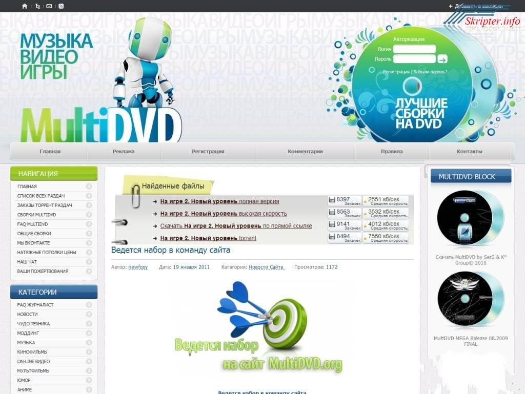 MultiDVD - адаптация DLE шаблона сайта multidvd.орг на CMS uCoz. Автором является