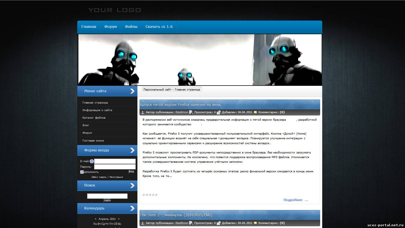 - Шаблон WoW3 flash адаптирован для uCoz+конструктор и PSD