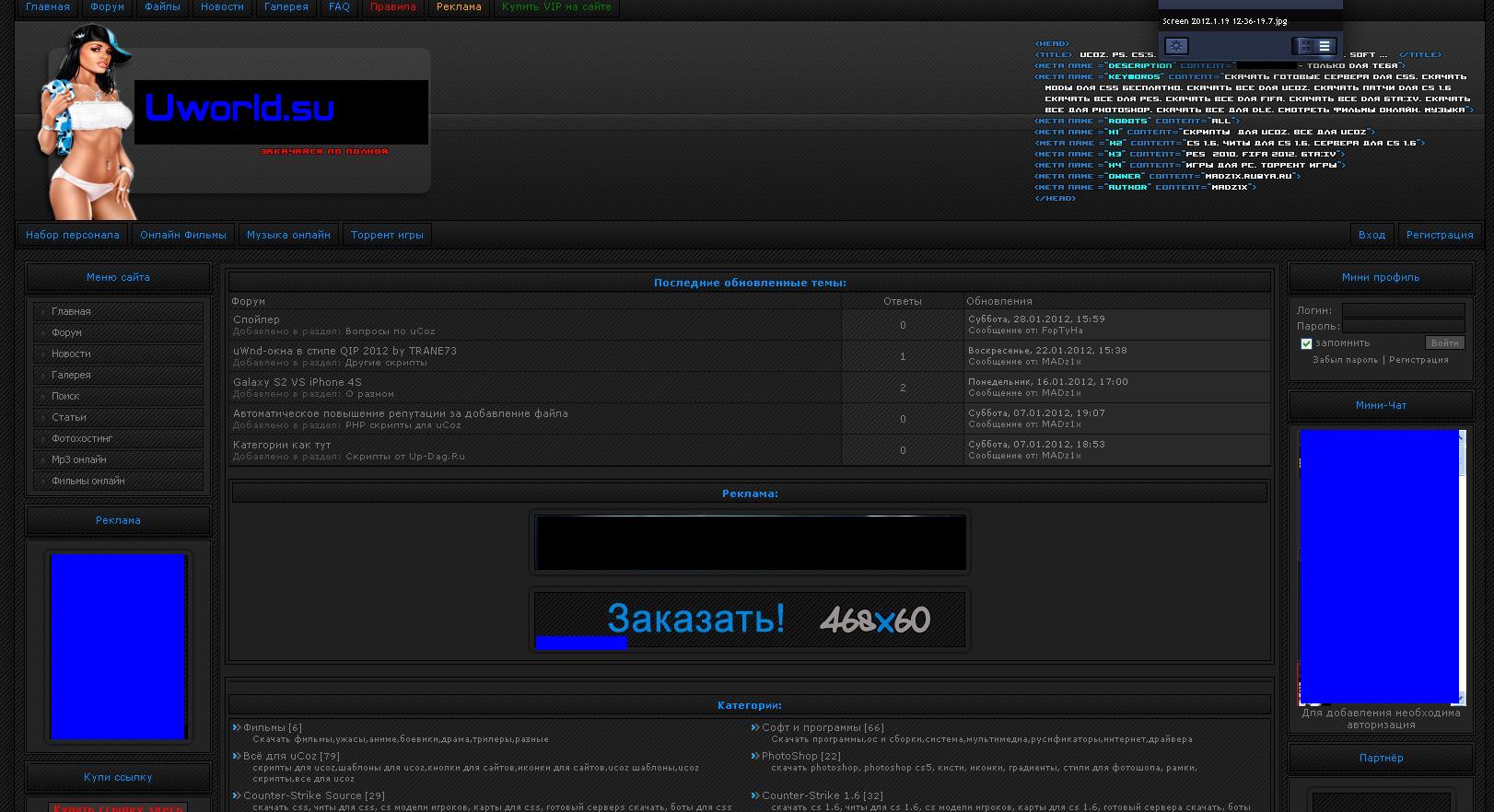 полный рип шаблона up-zone для uCoz
