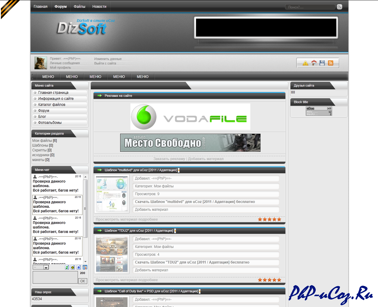 Diz-Soft является рипом. В шаблоне на 100% рабочий конструктор. Шаблон довольно простой и вы, наверное, встречали много подобных в интернете, но в этом есть что-то особенное, иначе бы он не попал на uWorld.su. В архиве вы найдете psd исходники логотипа и футера.