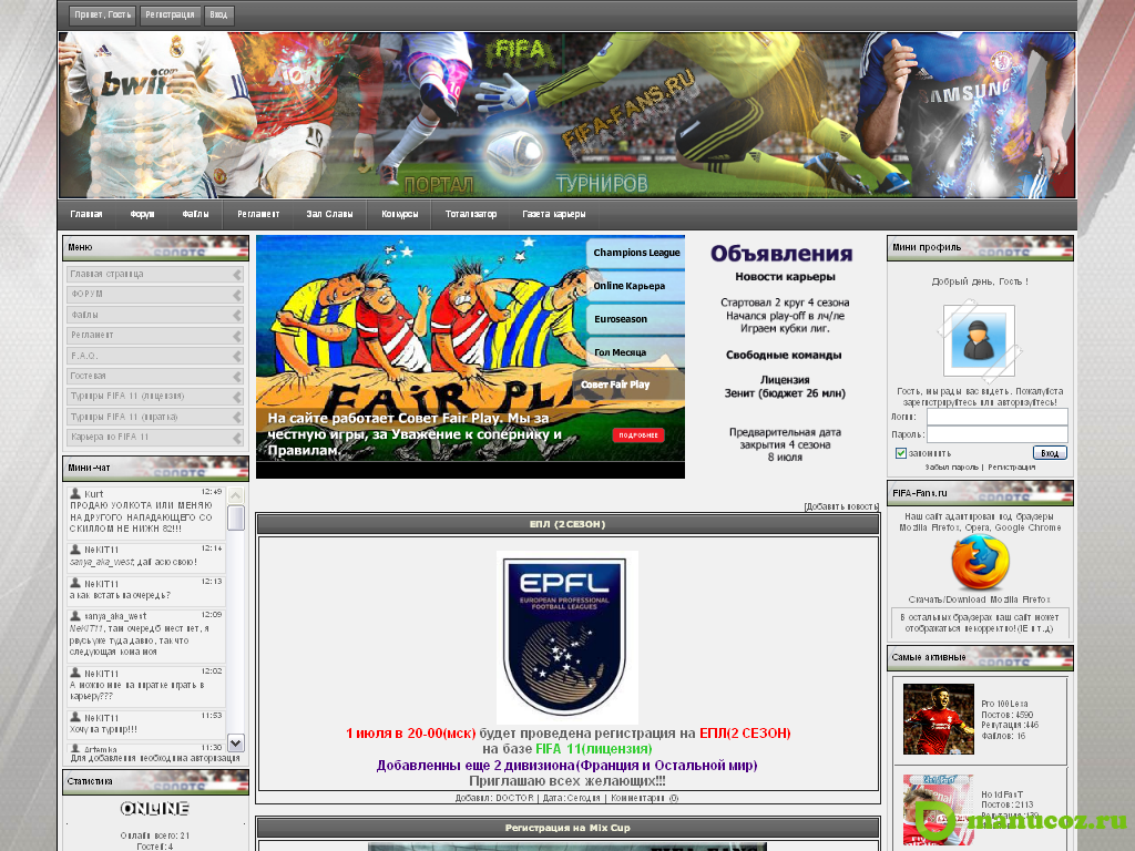 Шаблон Fifa-Fans для uCoz