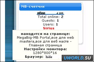 С помощью скрипта можно с легкостью определить где находится пользователь вашего сайта. При наведении на имя юзера будет высвечиваться информация. Минус в том что для этого нам потребуется мини-чат.